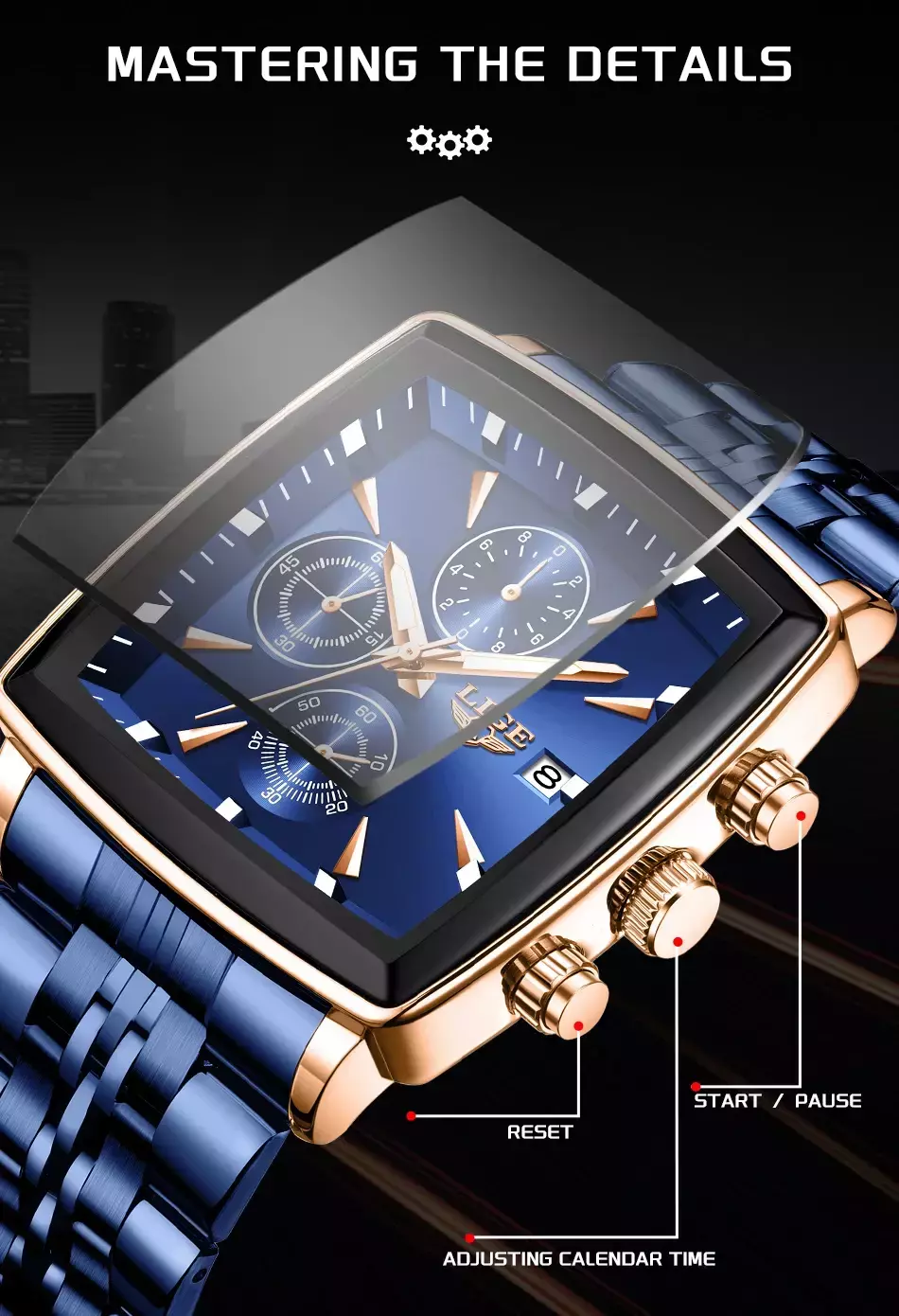 Design Sofisticado e Robusto: A caixa de aço inoxidável e o mostrador imponente trazem a combinação perfeita de luxo e força, inspirados no estilo nórdico e na precisão italiana.