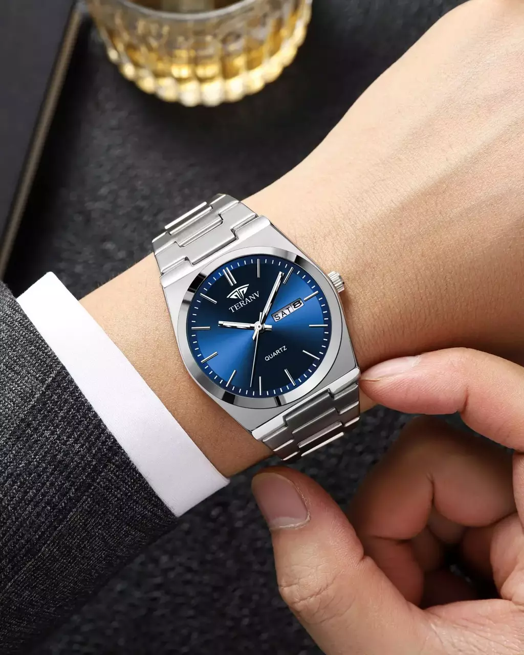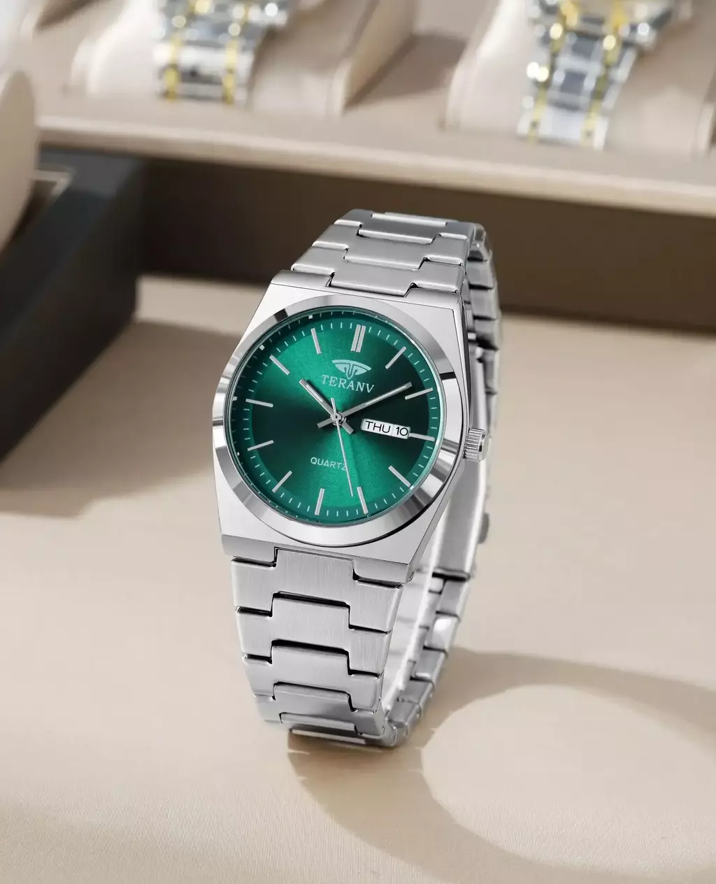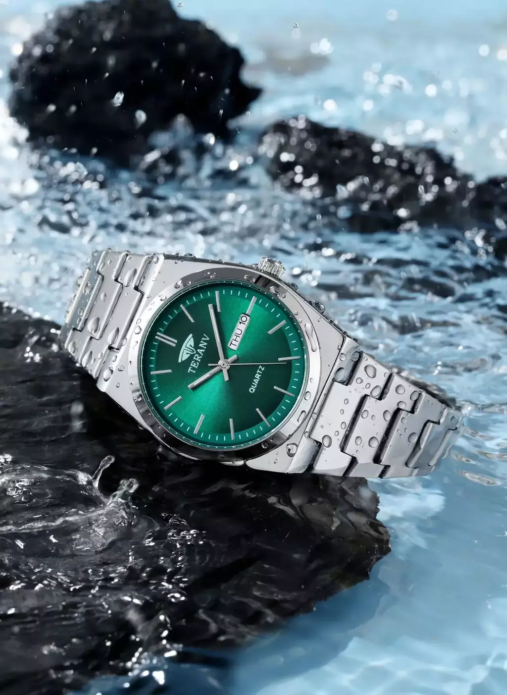 Conforto e Durabilidade: A pulseira de aço inoxidável oferece um ajuste confortável e seguro, enquanto a resistência e a durabilidade garantem que o relógio se mantenha impecável mesmo nas condições mais desafiadoras.