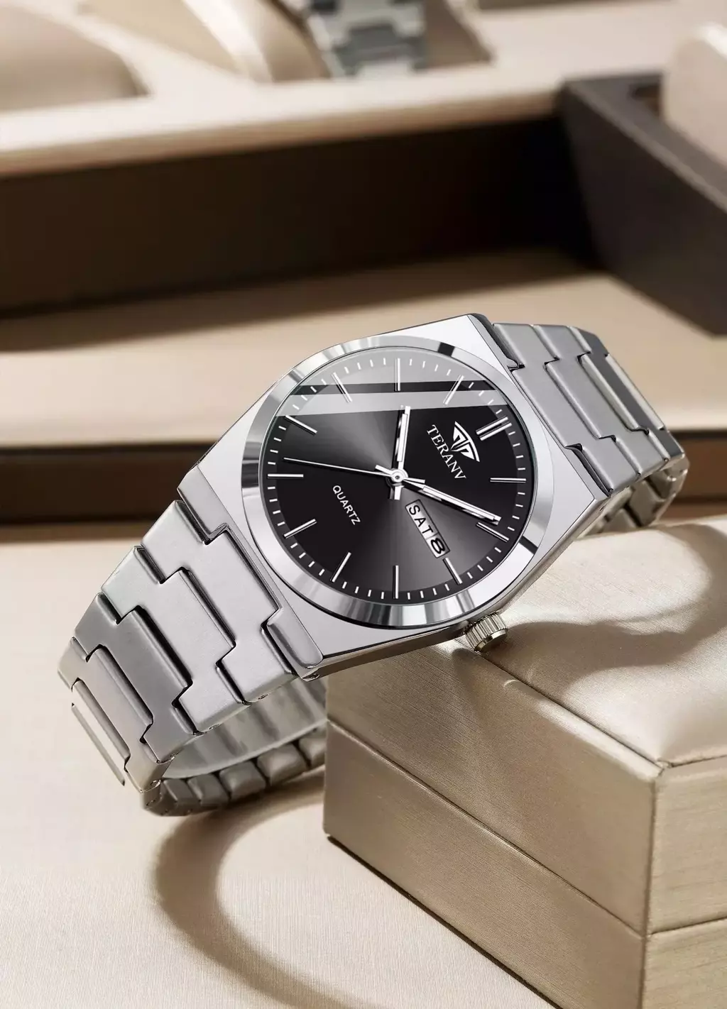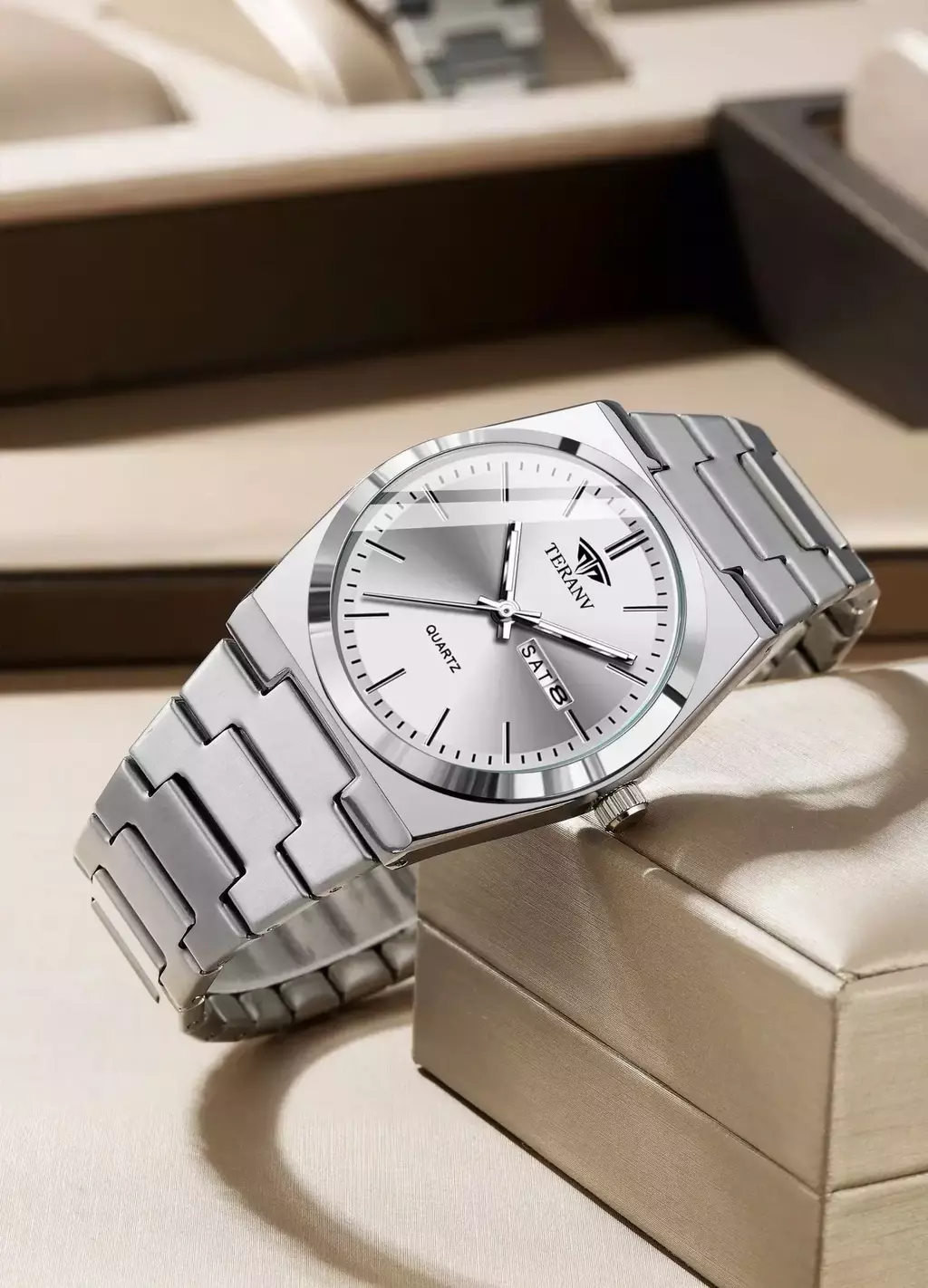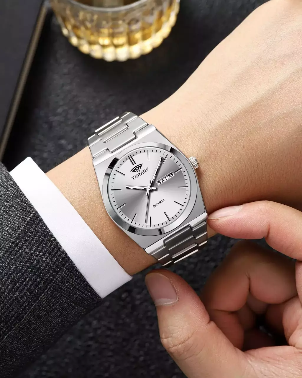 Conforto e Durabilidade: A pulseira de aço inoxidável oferece um ajuste confortável e seguro, enquanto a resistência e a durabilidade garantem que o relógio se mantenha impecável mesmo nas condições mais desafiadoras.