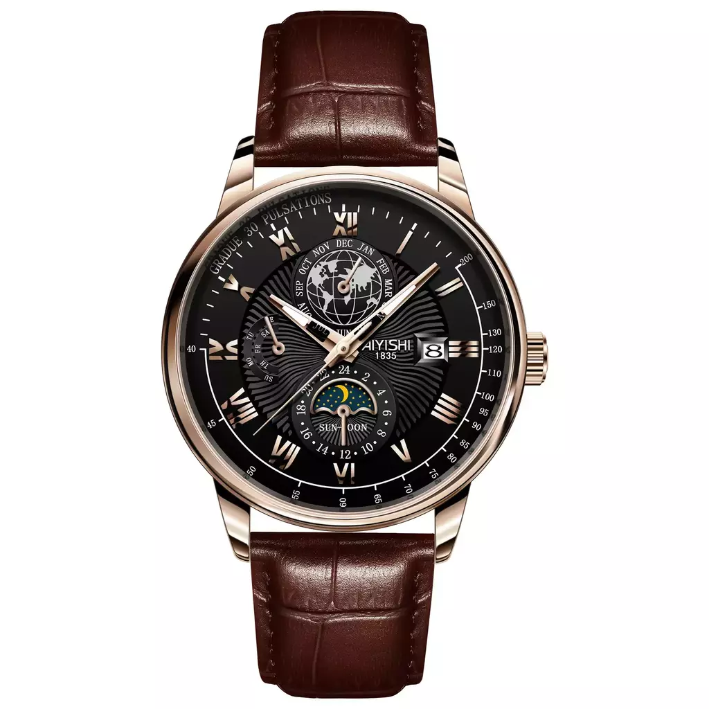 Movimento de Alta Precisão: Equipado com mecanismo quartz de última geração, oferece precisão inigualável em cada segundo, um reflexo da perfeição técnica italiana.
