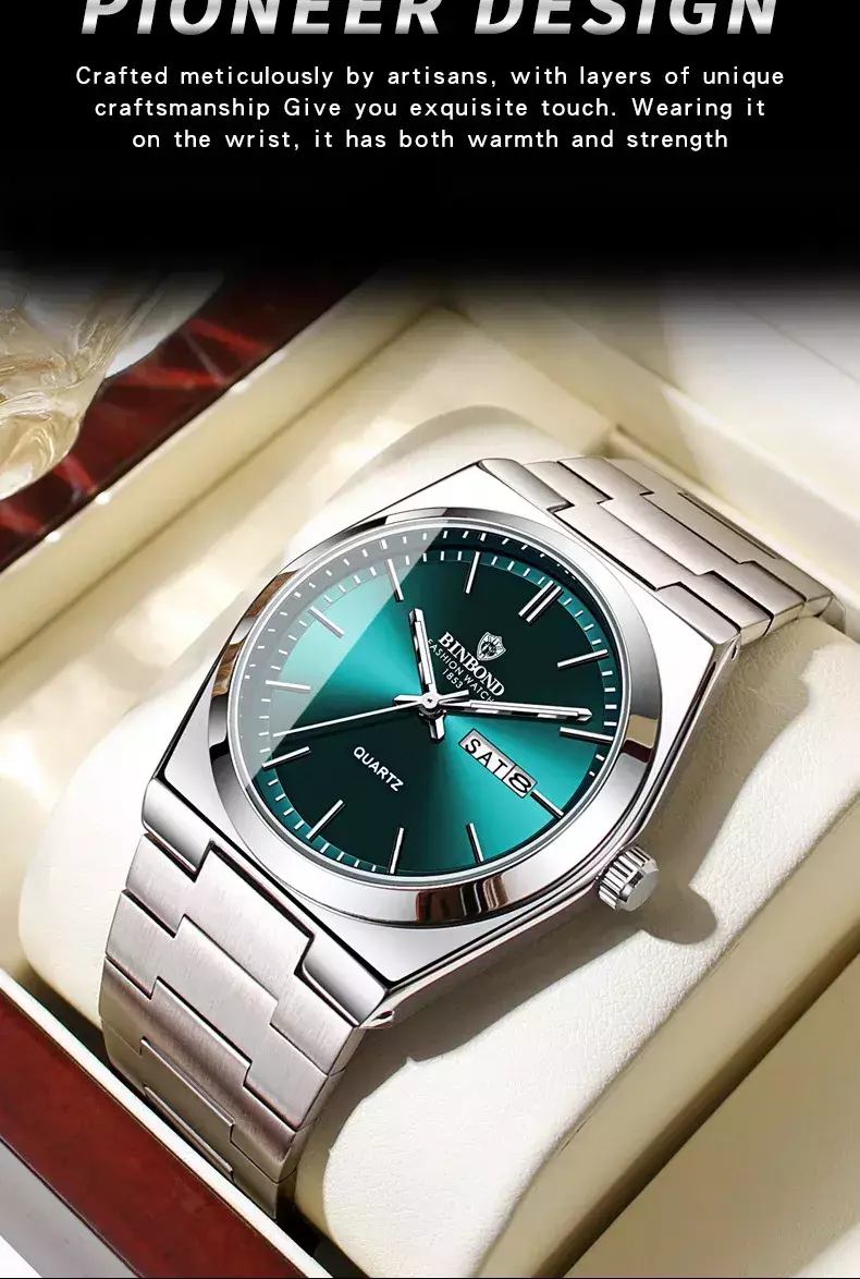 Design Impetuoso e Sofisticado: A caixa de aço inoxidável e o mostrador luminoso destacam-se pela combinação de robustez e refinamento italiano, refletindo a beleza da simetria e a precisão característica do design italiano.