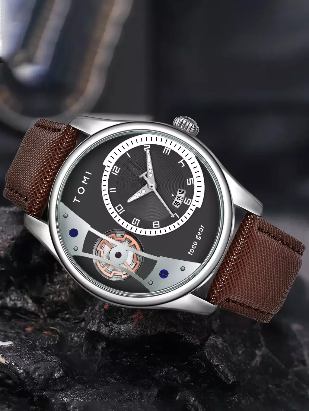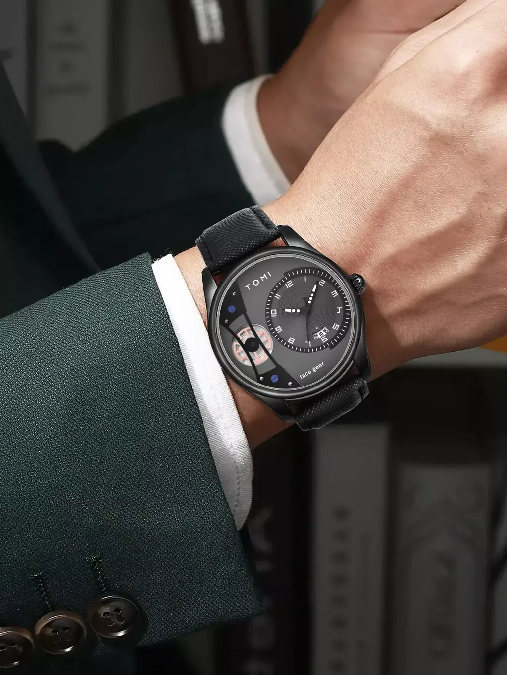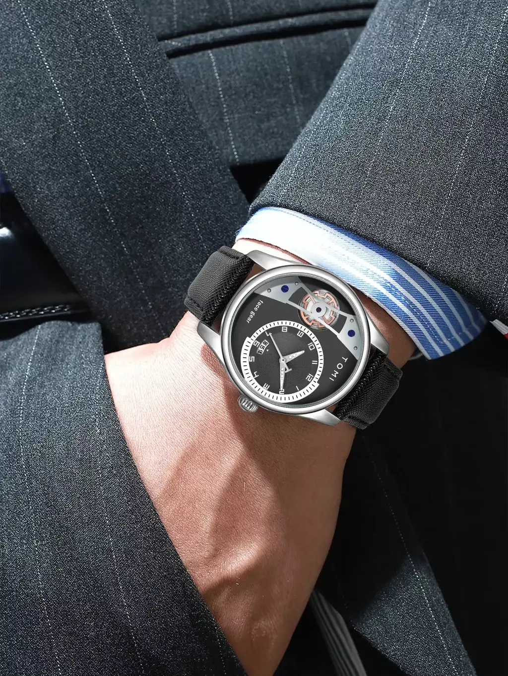 O mecanismo de alta performance garante um movimento fluido e confiável, enquanto a pulseira — firme e confortável — reforça a sensação de domínio e segurança.