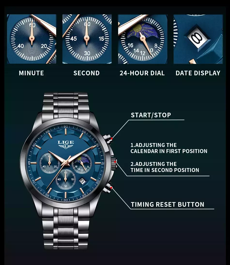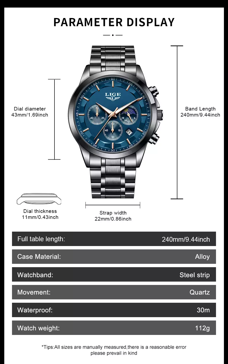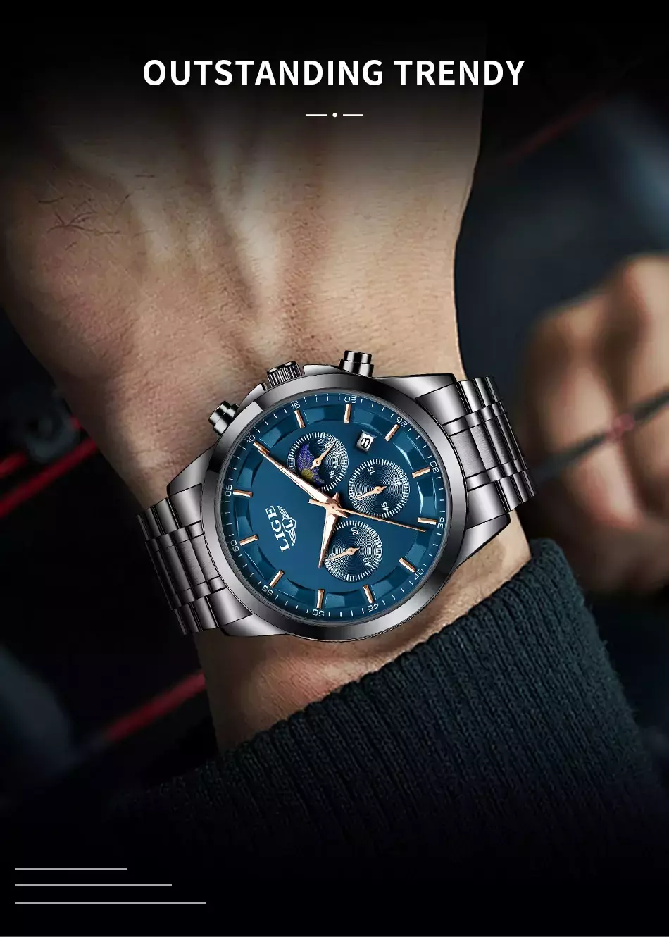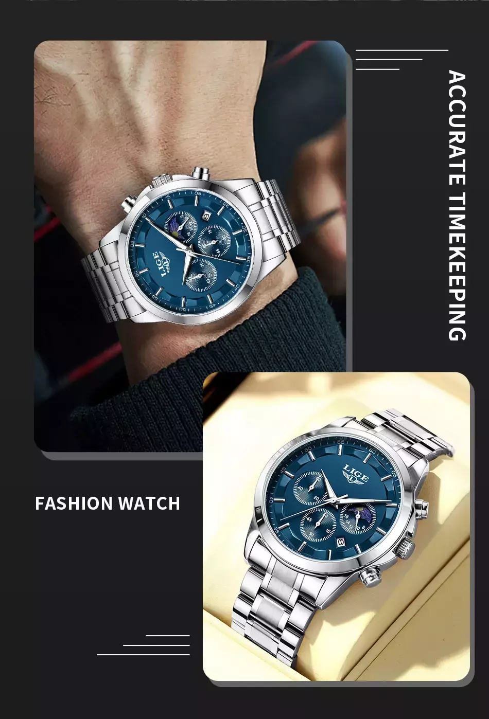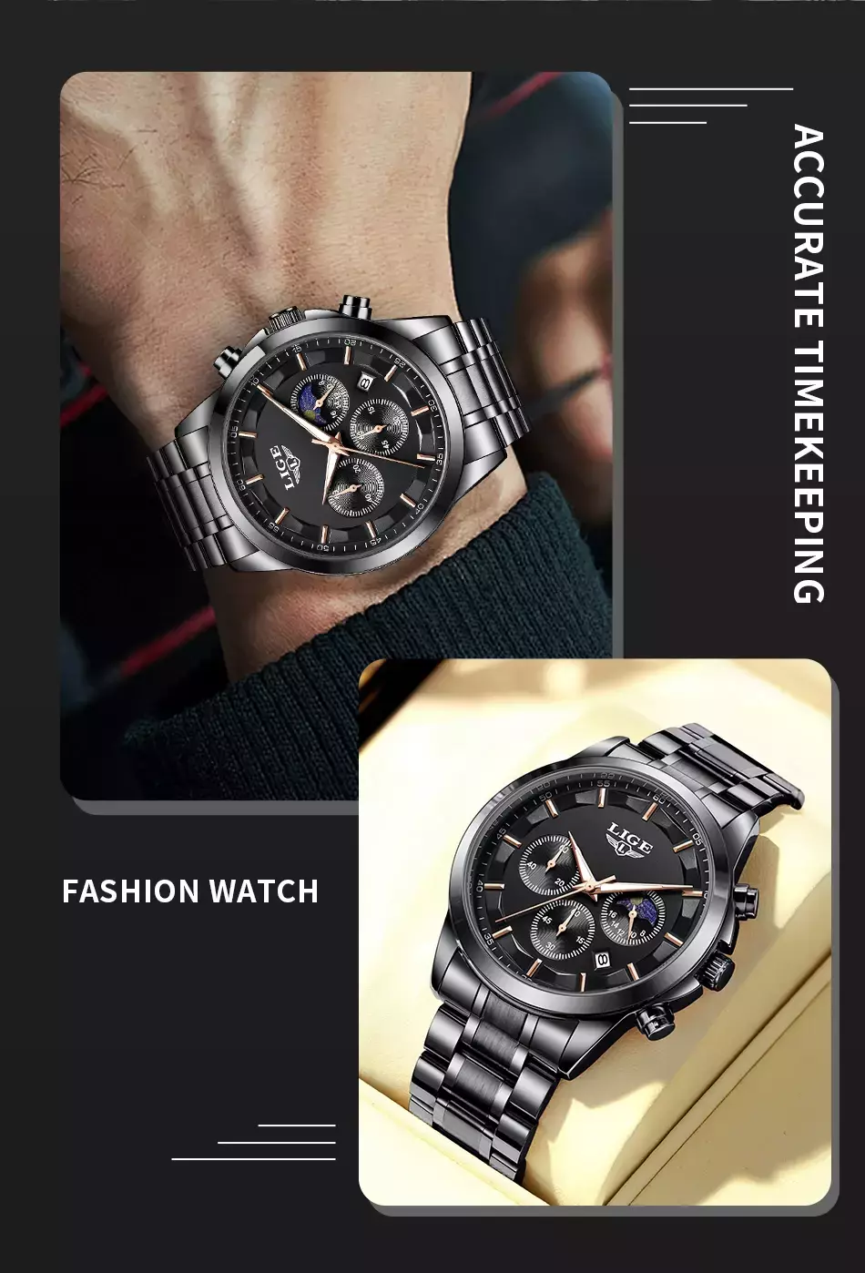 Conforto e Durabilidade: A pulseira de aço inoxidável oferece um ajuste perfeito ao pulso, garantindo conforto e resistência para o uso diário.
