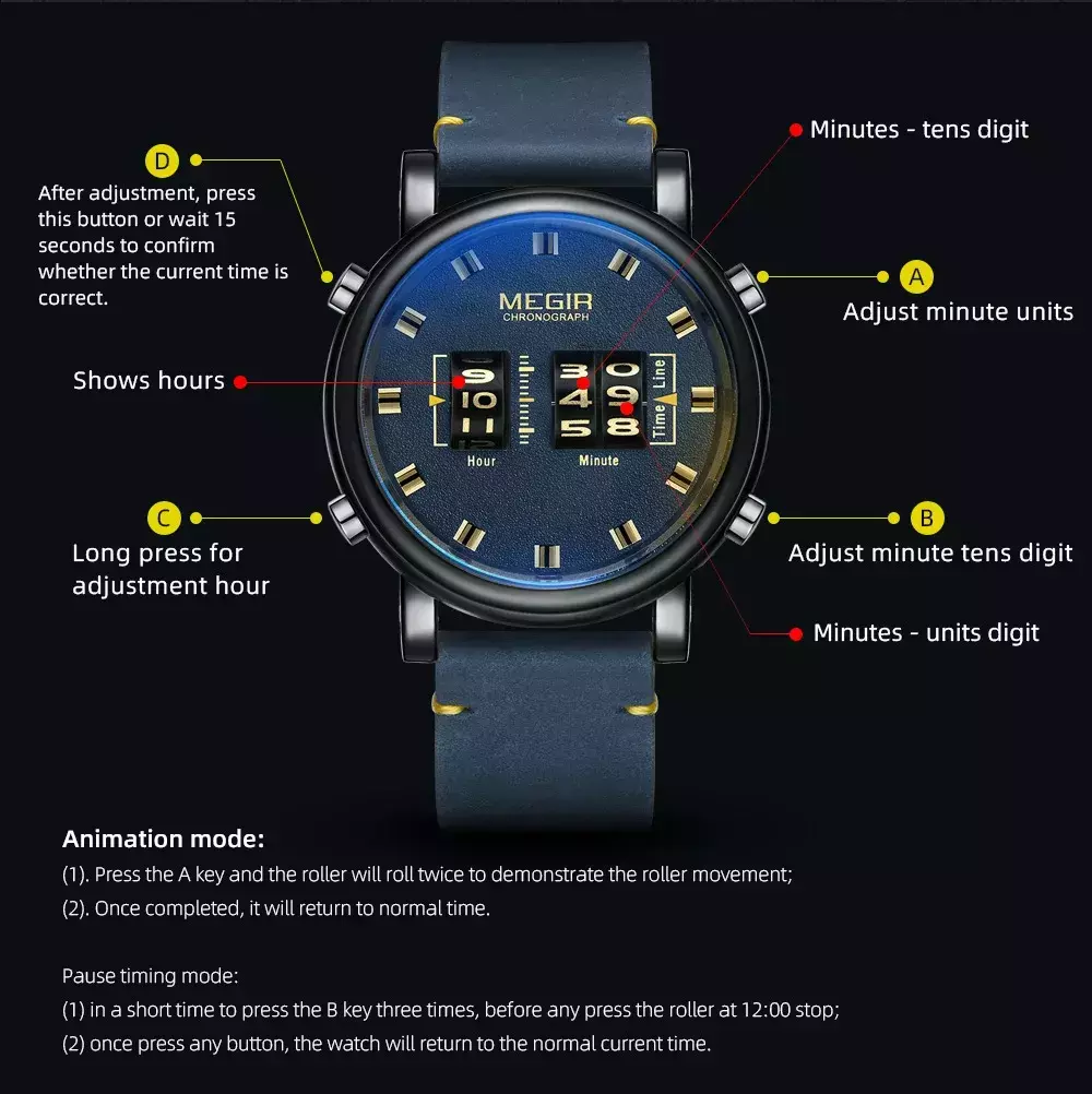 Movimento Confiável: Equipado com movimento de quartzo, garante precisão e confiabilidade em cada segundo.